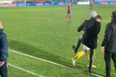 „Pisica” l-a luat pe după umeri și i-a dat câteva indicații înainte de reluarea jocului, dar fotbalistul a avut o surpriză în momentul în care s-a încheiat dialogul. Bogdan Lobonț i-a dat un șut prietenesc în fund, felicitându-l astfel pentru golul care a adus victoria formației noastre.