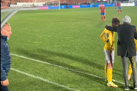 Reușita lui Eduard Rădăslăvescu a aruncat în aer banca de rezerve a României U20, iar selecționerul Bogdan Lobonț a ales să îl felicite într-un mod special pe elevul său. Acesta a fost îmbrățișat de colegi pentru frumusețea golului, însă antrenorul nostru a făcut un gest prietenesc mai puțin întâlnit la acest nivel.