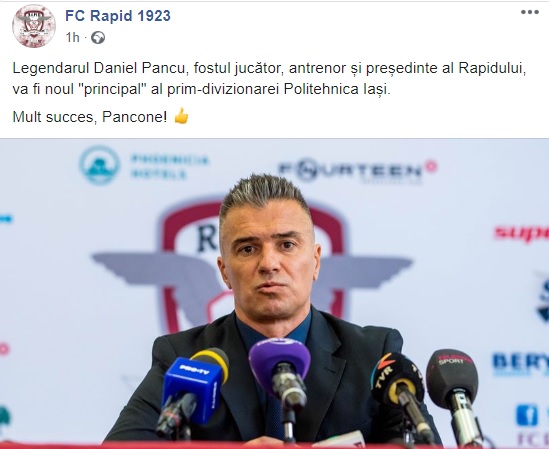 Poli Iaşi este echipa la care Daniel Pancu s-a lansat în fotbal. Aici a făcut junioratul, iar la echipa moldoveană a evoluat între 1994 și 1996. Rapidul l-a cumpărat în anul 1997, iar evoluțiile sale l-au transformat într-un adevărat idol al tribunei din Giulești. Fostul internațional rapidist a postat și el luni, pe contul său de Instagram, o fotografie cu sigla lui Poli Iași, semn că tratativele sunt avansate.