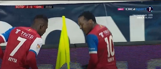 Atacantul francez a marcat primul gol, după doar 50 de secunde profitând de gafa portarului Mihai Eșanu. Keyta a reușit și faza golului doi. A driblat devastator pe partea stângă și i-a pasat lui Hervin Ongenda, care a deviat elegant în plasa porții adverse. Era doar minutul 24 și gazdele conduceau cu 2-0. Cei doi jucători s-au bucurat după reușita spectaculoasă și au început să danseze (VIDEO AICI). Tot Keyta a reușit din penalty și golul de 3-0, după un penalty obținut de Mihai Roman.