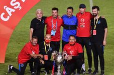 Fotbalistii de la FCSB Dennis Man, Cristian Cosmin Dumitru, Florin Tanase, Ionut Vina, Florinel Coman, Andrei Daniel Vlad, Ionut Pantaru Valentin Cretu, Ovidiu Popescu, Olimpiu Morutan Adrian Petre si Lucian Iulian Cristea se bucura dupa castigarea Cupei Romaniei in urma meciului de fotbal impotriva celor de la Sepsi OSK Sfantu Gheorghe, disputat fara spectatori pe Stadionul Ilie Oana din Ploiesti, miercuri 22 iulie 2020. © FOTO:Razvan Pasarica/SPORT PICTURES