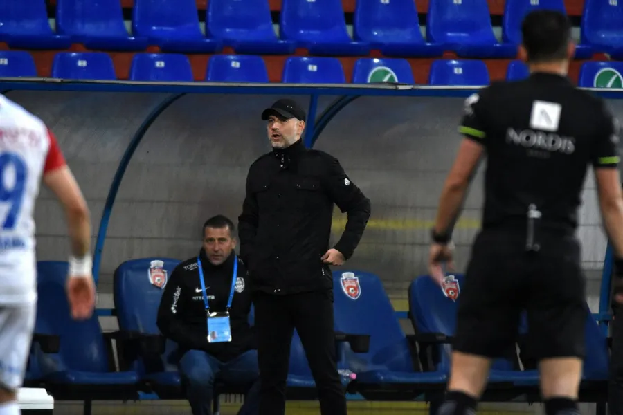 Eduard Iordanescu, antrenorul echipei CFR Cluj, urmareste meciul de fotbal contra formatiei FC Botosani din etapa 9 a play-off-ului Ligii 1, disputat pe stadionul Municipal din Botosani, marti, 18 mai 2021. DRAGOS PASCANEANU/ MEDIAFAX FOTO