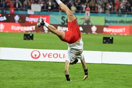 A surprins pe toată lumea la petrecerea din cantonament, atunci când a stat în mâini și a făcut tumbe, devenind rapid viral pe rețelele de socializare. Cum faza cu tumbele a prins rapid la fanii roș-albaștrii, Valentin Crețu a repetat momentul pe teren înainte ca echipa să primească medaliile și trofeul de campioni.