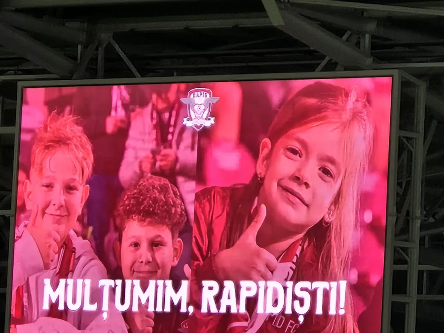 „Mulțumim rapidiști”, a fost mesajul afișat pe tabela din Giulești, după fluierul final.