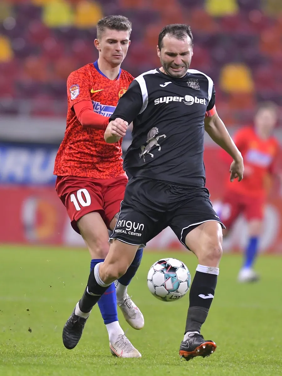 Cosmin Frasinescu în duel cu Florin Tănase, in meciul de fotbal dintre FCSB si CSM Politehnica Iasi, contand pentru Liga 1 Casa Pariurilor, desfasurat fara spectatori pe Arena Nationala din Bucuresti, sambata 30 ianuarie 2021. © FOTO:Razvan Pasarica/SPORT PICTURES