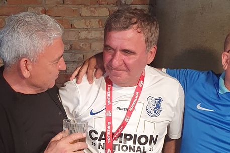 „Șampania ne-au adus-o cu o zi înaintea meciului. Este una de colecție, rară, fiind oferită de unul dintre sponsorii noștri”, ne-a mărturisit Decebal Curumi, directorul bazei sportive pe care Gică Hagi o are la Ovidiu.