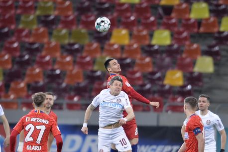 Min. 3. Florin Tănase centrează în careul lui Arlauskis, dar balonul trimis de Ionuț Vînă cu o lovitur de cap trece peste poartă.