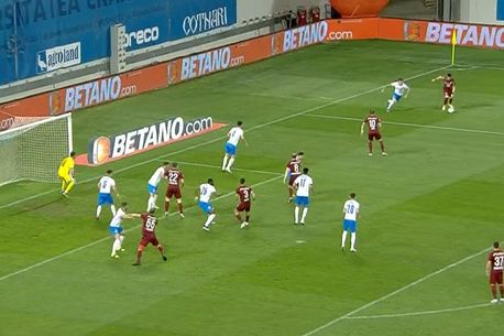 Imediat, mijocașul și-a făcut simțită prezența pe teren. A primit o minge din corner, l-a driblat cu ușurință pe Alex Cicâldău și a șutat la coltțul lung, fără speranțe pentru Pigliacelli (VIDEO AICI).