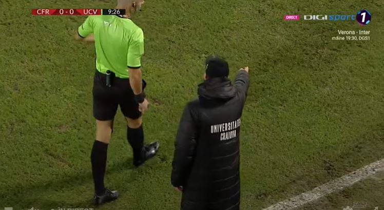 MIN 90+2.Corneliu Papură protestează și vede al doilea cartonaș galben. Antrenorul Craiovei a fost trimis în tribună.