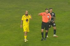 Min. 64: De Moura este eliminat pentru două cartonașe galbene după un cot aplicat lui Corbu!