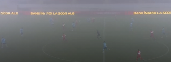 MIN 1. A început partida din Cupa României găzduită de stadionul din Giurgiu. Nu se vede mai nimic, din cauza ceții.