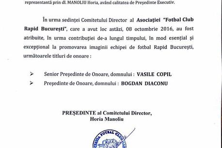 Ținem să-l informăm pe acest domn că numele de Rapid este unul prea important pentru ca orice veleitar să-l târască în lupta politică.