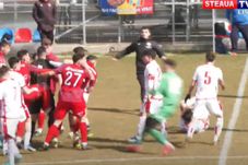 După un fault al unui stelist la mijlocul terenului, spiritele s-au încins și jucătorii celor două rivale au început să se bată chiar sub privirile arbitrului delegat la această partidă.