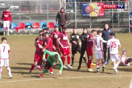 Spiritele s-au încins la partida jucată de CSA Steaua cu Dinamo în complexul sportiv din Ghencea, scor 1-0, în Liga Elitelor U19, iar o bătaie generală a avut loc între jucătorii celor două formații.