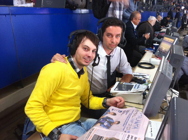 Andrei Tivilichi (în galben, alături de Dan Ștefănescu) a comentat toate derby-urile importante din fotbalul european și a făcut deplasări pe marile stadioane