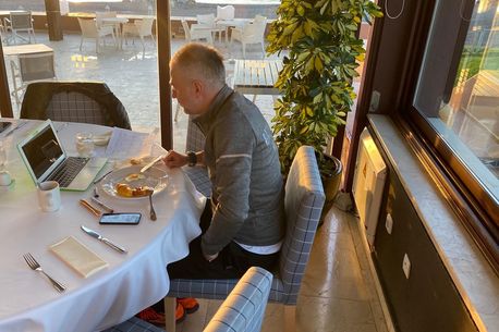 Edward Iordănescu, 41 de ani, se pregătește intens pentru participarea în play-off cu Gaz Metan! Tehnicianul medieșenilor a refuzat-o pe Craiova lui Rotaru, iar acum este cantonat cu Mediașul, în Spania la hotelul Guadalamina din Marbella, unde pregătește ultima ofensivă pentru un loc în primele șase la finalul sezonului regular. În această dimineață, reporterii ProSport trimiși în Spania l-au surprins pe Iordănescu în timp ce lua micul dejun, cu laptopul și cu mai multe scheme de joc în față. Ipostaza aceasta confirmă practic imaginea pe care antrenorul și-a creat-o în fotbalul românesc, aceea de profesionist până la limita obsesiei.