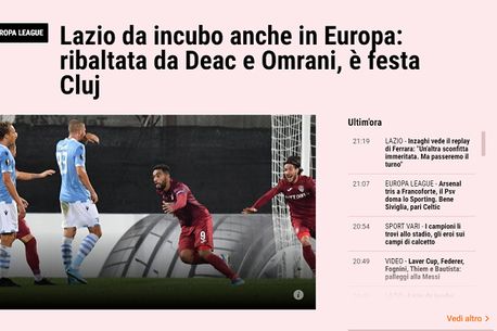 „Coșmar pentru Lazio în Europa! Deac și Omrani au întors scorul, Clujul petrece! Biancolcelestii au condus prin golul lui Bastos, dar au fost egalați din penalty, iar în repriza secundă au fost zdrobiți de români! Un nou pas teribil, după înfrângerea cu Spal. Lazio pierde la debut în Europa!”, scriu jurnaliștii de la Gazetta dello Sport.