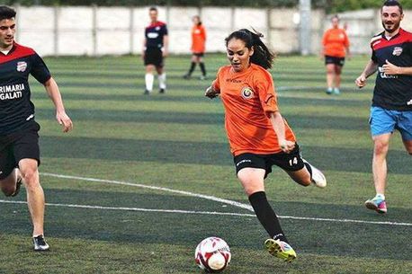 Carmen Marcu într-un meci demonstrativ cu echipa jurnaliștilor gălățeni.