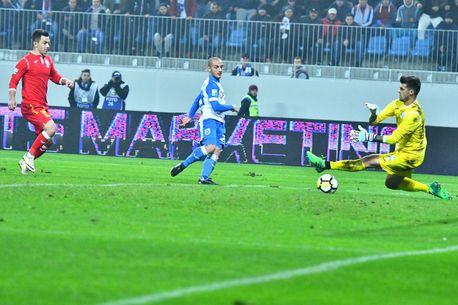 Min. 45+1 GOOOL CS U Craiova! Mitriță reușește dublă, după o pasă a lui Mihai Roman. Jucătorul adus de la Pescara a accelerat în interiorul careului, după care a șutat la colțul lung, fără speranță pentru Drăghia.