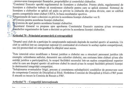 E vorba de Articolul 2 din ROAF, Articolul 4 din ROAF, Articolul 45 (Alin. 12.1) din ROAF și Articolul 70 din Statutul FRF. Conținutul lor îl puteți citi, în facsimil, în acest articol, iar linkurile documentelor publicate pe site-ul FRF sunt aici și aici.