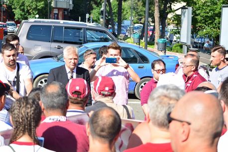 Primarul Dan Tudorache spune că ideea proiectului Rapid i-a venit stând de vorbă cu locuitorii Sectorului 1. Pe 5 iulie, edilul s-a întâlnit cu câteva zeci de suporteri giuleșteni veniți în fața Primăriei. FOTO: contul de Facebook al lui Dan Tudorache