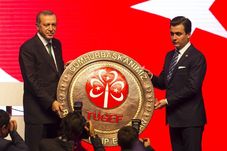 Recep Tayyip Erdogan și Osman Gokcek, la un congres al Federației Cluburilor de Tineret din Turcia, condusă de patronul de la Osmanlispor