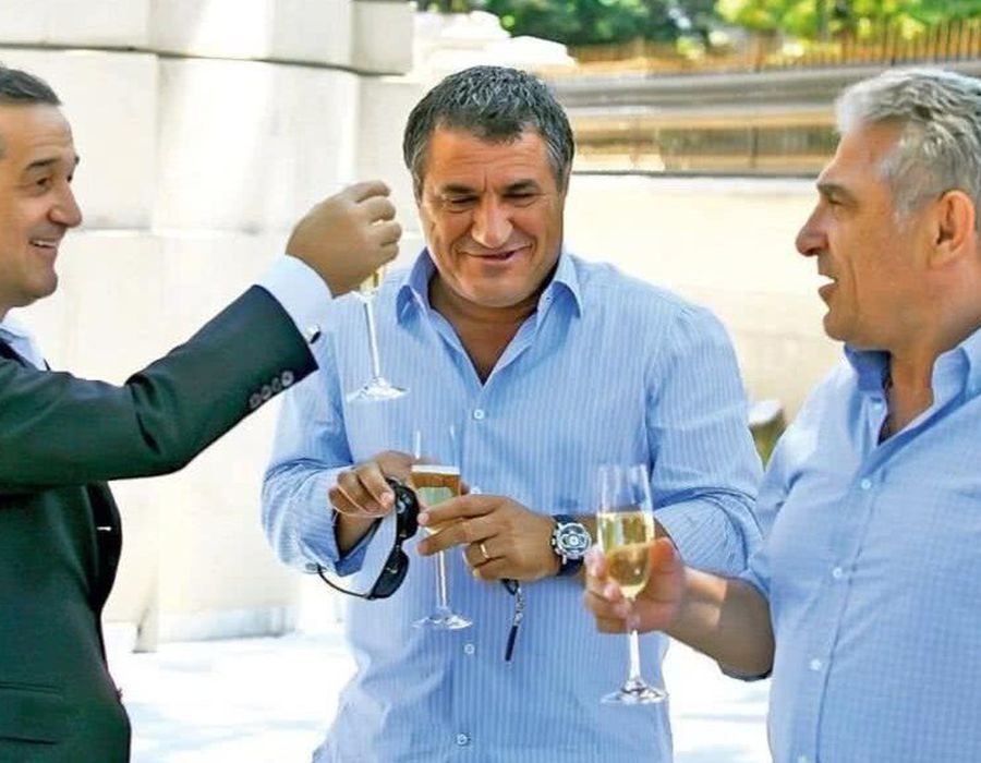 (foto: Gigi, Victor și Giovanni Becali servesc un pahar de șampanie la „Palatul” din Aleea Alexandru)