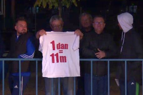 La scurt timp după flash-interviuri și conferințe de presă, Dan Petrescu a avut o surpriză în parcarea stadionului. Mai mulți suporteri olteni i-au așteptat pe ardeleni la autocar, însă unul dintre ei s-a făcut remarcat prin tricoul afișat.