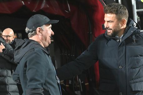 Cei doi antrenori Gheorghe Hagi si Adrian Mutu se saluta inaintea meciului de fotbal dintre Rapid Bucuresti si Farul Constanta, contand pentru Cupa Romaniei, desfasurat pe Stadionul Rapid Giulesti din Bucuresti, miercuri 9 noiembrie 2022. © FOTO:Razvan Pasarica/SPORT PICTURES