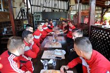 La ora 14 fix ajunge și antrenorul Alpar Meszaros. E cel mai îngândurat. Cunoaște cel mai bine nivelul unei echipe de Liga 1. Își face griji pentru elevii săi pentru că știe ce va urma. Îi salută pe jucători și le urează poftă bună. Apoi se așază la masă cu secundul său și mai pun la punct unele detalii despre meci. Ciorbă și piept de pui cu cartofi și legume e meniul comandat pentru toți.