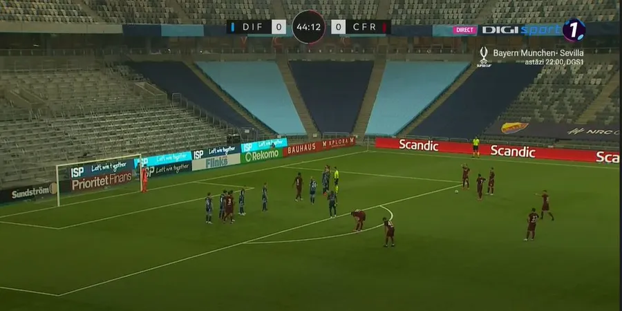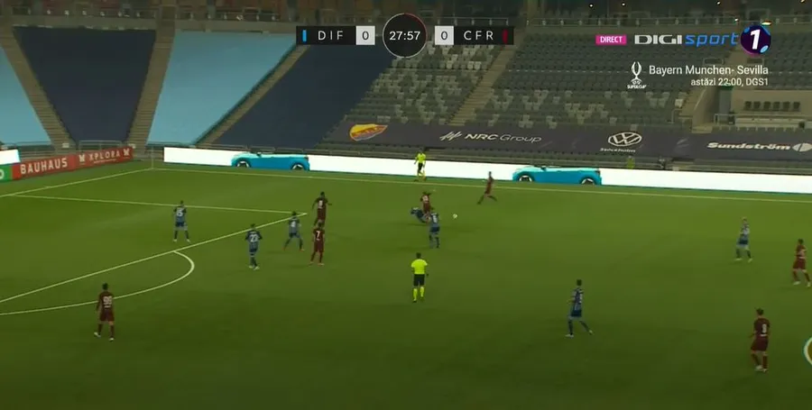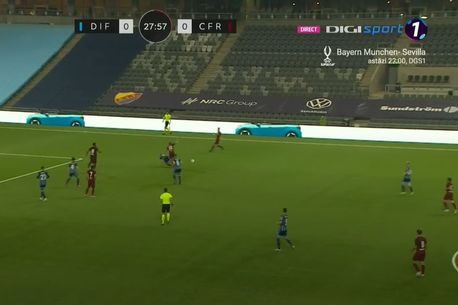 Apoi, Ciprian Deac a fost faultat spre finalul primei reprize la marginea careului mare, dar arbitrul a dat lovitură liberă de la marginea careului.