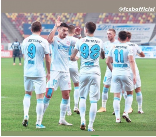 „Back in business. Let’s fight for it, team! (n.r. trad. – M-am întors. Să luptăm pentru asta, echipă!)”, alături de o poză în care mai mulți jucători de la FCSB se bucură după ce echipa lor a marcat un gol.