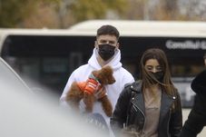 Dennis Man și-a dus câinele la medic. A fost clar că nu a fost o vizită programată de mult timp, pentru că fotbalistul s-a îmbrăcat în trening, deși afară temperaturile sunt destul de scăzute. Nici el, nici iubita, ceva mai gros îmbrăcată, nu au uitat de masca de protecție.