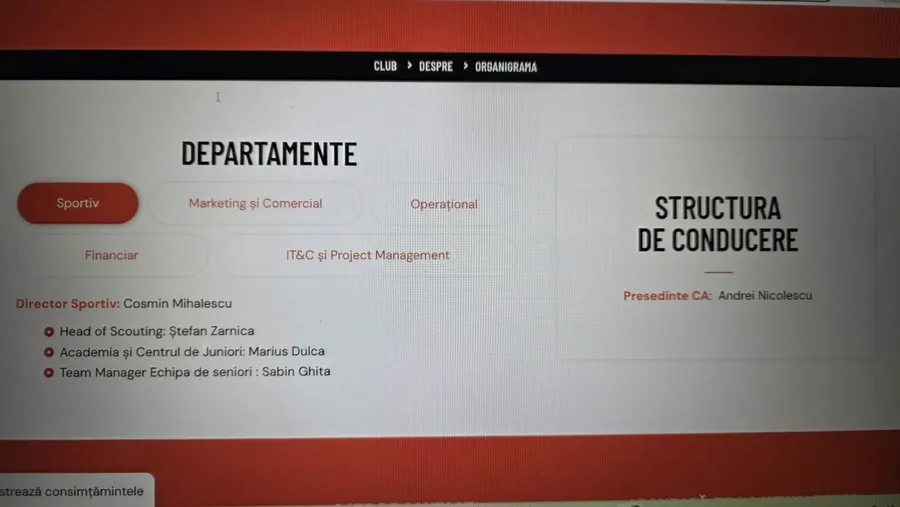 Chiar dacă, în continuare, pe site-ul clubului avocatul Nicolescu apare în această funcție (FOTO JOS), actele oficiale spun altceva.