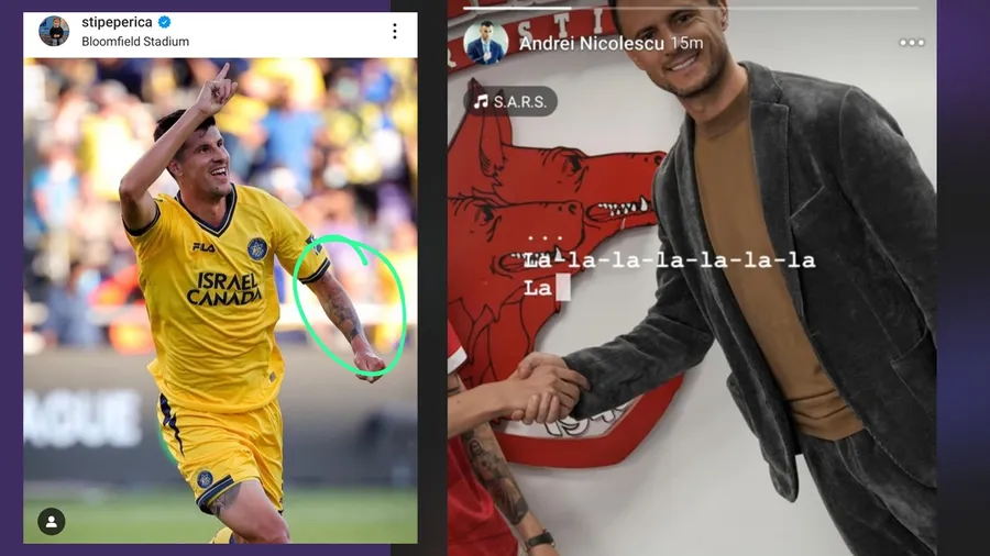 Sâmbătă seara, Andrei Nicolescu a postat în social media o fotografie misterioasă cu un jucător alături de care dă mâna în fața stemei unde sunt prezentate achizițiile, „metaforă” care traduce că părțile sunt înțelese. Pe mâna stângă, jucătorul are un tatuaj care apare și pe mâna lui… Stipe Perica. VEZI FOTO JOS.