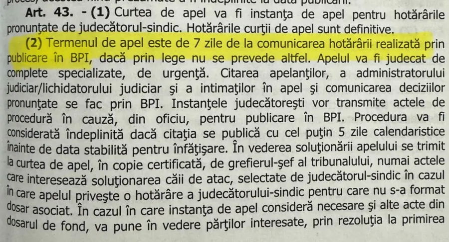 Conform Legii Insolvenței, exista un termen de 7 zile pentru ca avocatul lui Diego Fabbrini să formuleze apelul.