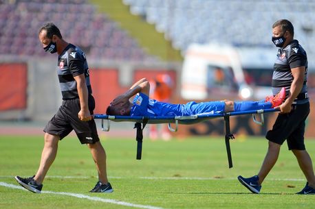 Min33: Mățan nu mai poate continua și este scos cu targa de pe teren. În locul lui intră Daniel Benzar
