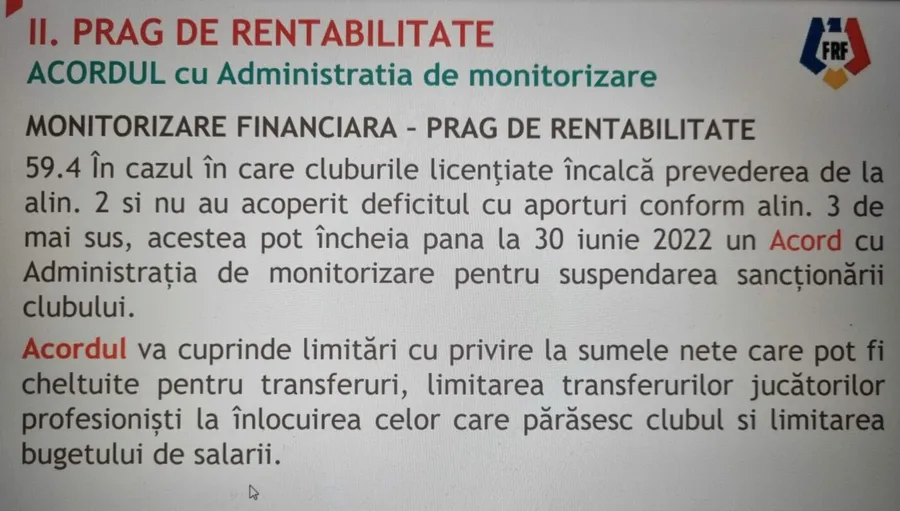 În aceste condiții, regulamentul poate ajunge până la o sancțiune dură, este vorba de interzicerea legitimării jucătorilor până la următoarea evaluare la care se constată îndeplinirea cerinței!