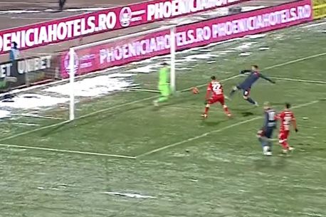 Meciul s-a jucat pe un teren infernal, înghețat de temperaturile cu mult sub zero grade de la ora meciului.