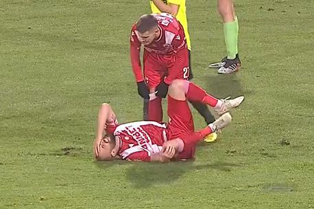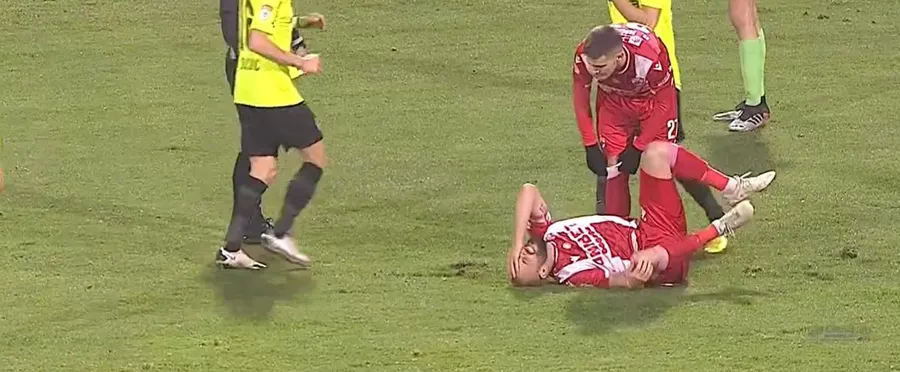 Fundașul croat a intrat prin alunecare la o minge spre care alerga Debeljuh. Atacantul a avut prim-planul și s-a prăbușit în urma atacului.(VIDEO AICI)