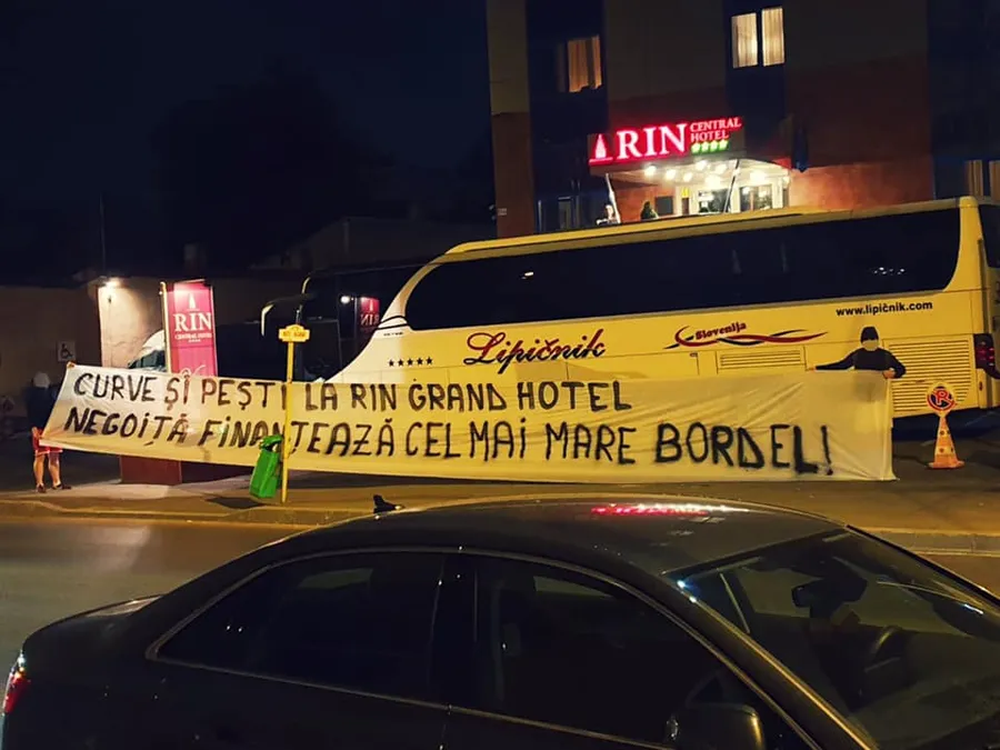 În urmă cu trei ani, suporterii au mers în fața hotelului deținut de Ionuț Negoiță, declanșând un scandal uriaș la vremea respectivă: „Curve și pești la RIN GRAND HOTEL / Negoiță finanțează cel mai mare bordel!”