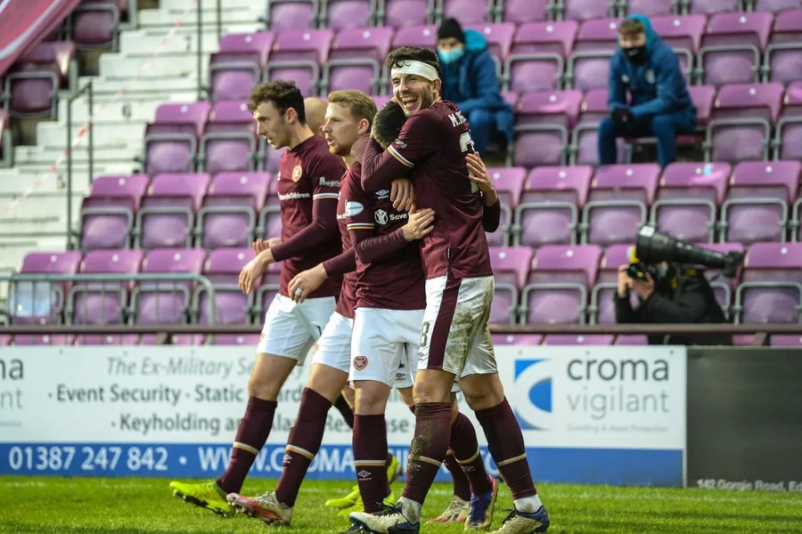 Mihai Popescu, în tricoul lui Hearts sâmbătă, atunci când echipa sa a învins-o cu 1-0 pe Dunfermline.