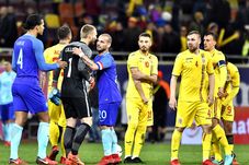 GROZNY, RUSSIA - NOVEMBER 15, 2016: Romania's Gabriel Enache, Andrei Prepelita, Iasmin Latovlevici, Florin Andone, Razvan Marin, Gheorghe Grozav (L-R front), Dorin Rotariu, Bogdan Stancu, Cristian Sapunaru, Dragos Grigore, and goalkeeper Costel Pantilimon (L-R back) pose for a photo ahead of the friendly football match against Russia at Akhmat Arena. The Russian team won the game 1-0. Valery Matytsin/TASS,Image: 305776249, License: Rights-managed, Restrictions: , Model Release: no