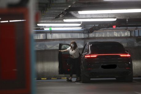 Claudia conduce un superb Porsche Cayenne, iar aceasta își ia toate măsurile de siguranță în pandemie de coronavirus, din moment ce a folosit corect masca de protecție, imediat după ce s-a dat jos din mașină.