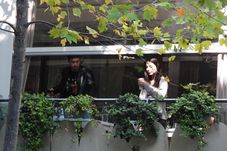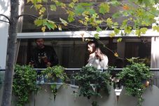 Cei doi îndrăgostiți s-au așezați la terasă și au așteptați să dea comanda ospătarului. În momentul în care a fost fotografiat, fostul fotbalist de la FC Viitorul avea în mână o pungă de hârtie, semn că cei doi au fost la cumpărături înainte de a se relaxa la restaurant.