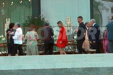 Simona Halep a purtat o rochie scurtă, roșie, cu un umăr gol, iar cel mai frumos accesoriu al sportivei a fost zâmbetul larg pe care îl avea când își privea proaspătul soț.