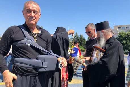 Gigi Becali a organizat un protest pe Calea Victoriei, la o zi după marșul LGBT. Patronul FCSB s-a prezentat alături de zeci de preoți pentru a da cu apă sfințită pe drumul unde au mers membrii LGBT. Asta chiar dacă latifundiarul din Piperaa suferit o intervenție chirurgicală, după ce a aflat că are o problemă serioasă la tendonul umărului stâng.