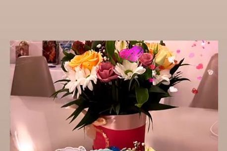 Laurențiu Reghecampf a postat pe Instagram o poză cu tortul pe care i l-a dăruit Corinei Caciuc de ziua ei, iar pe fundal se văd și florile pe care acesta i le-a oferit.