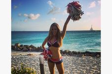 Totodată, în urmă cu ceva timp, Ashley a plecat alături de jucătorii New England Patriots pentru calendarul anual în care starurile echipei apar în costume de baie. Evident, și frumoasa majoretă a participat la ședința foto.