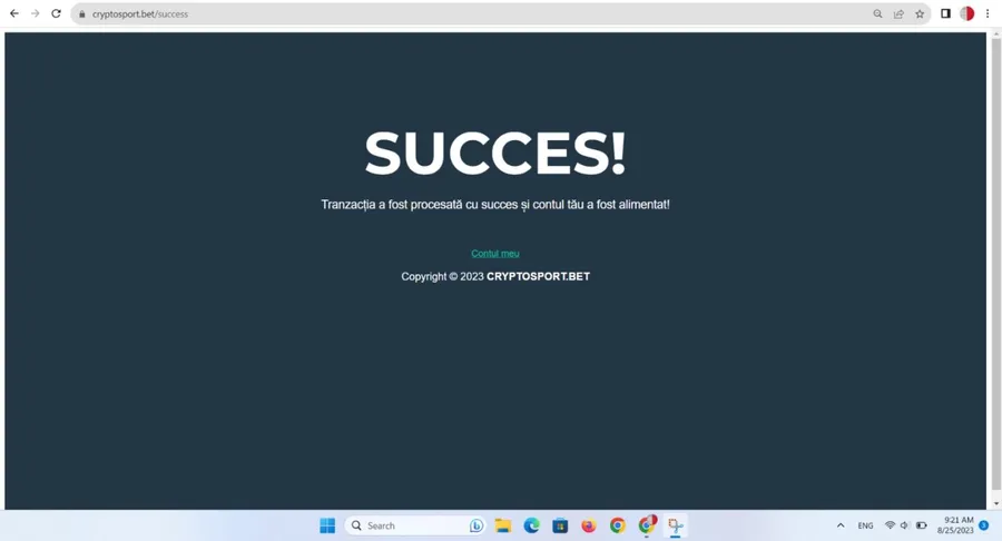 INTNET RO SRL a făcut restituirea sumei pe care am virat-o în contul CryptoSport.Bet. Firma figurează cu sediul social în județul Dâmbovița, comuna Văcărești, sat Văcărești, strada Gării 691. Și, conform datelor de la Registrul Comerțului, are un singur administrator: Kișș Mihăiță Sebastian.